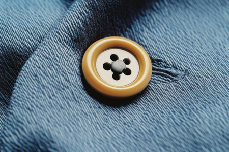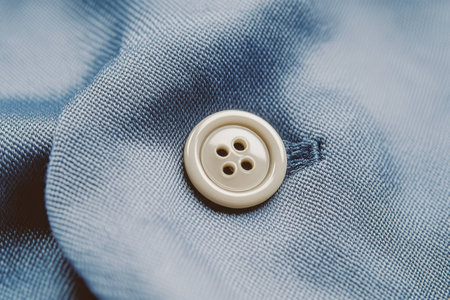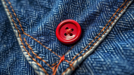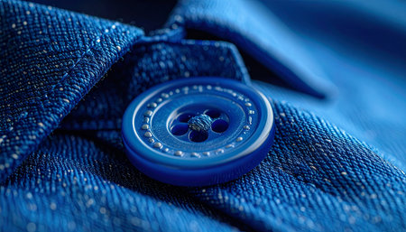 Close up of a denim fabric with a button showcasing texture and detail, ideal for fashion related projects, emphasizing style, craftsmanship, and material quality