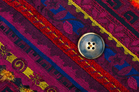 Red textile button on top of miscellaneous buttons