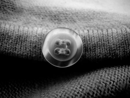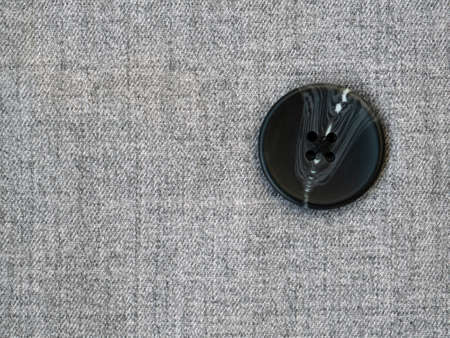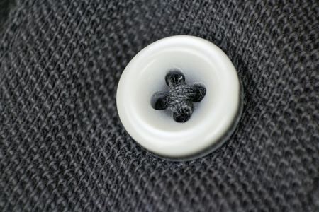 White button on a grey fabric in macro shot.