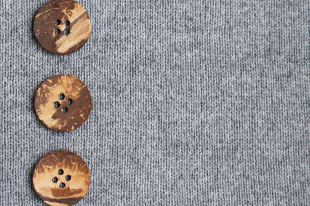 Sewing Buttons on a grey knitting background