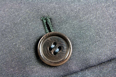 Texture of business woman jacket.Closeup of suit button for business or formal wear. Grey fabric for tailoring. The gray pinstripe suit cloth.
