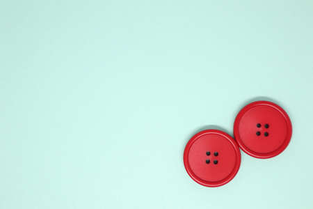 Colorful red and pink buttons on a white background. Set of red buttons. Old vintage buttons close up. Copy space. Top view. Background of buttons.