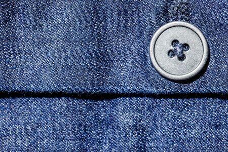 Blue jeans closeup fabric with button sewed to the material.
