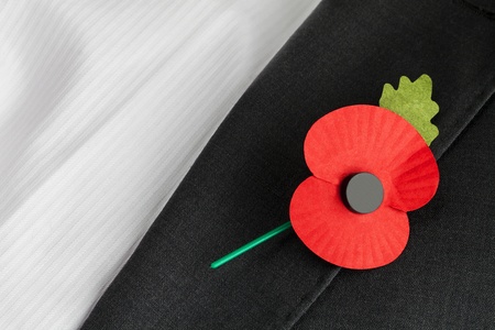 A remembrance poppy flower in the buttonhole