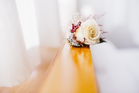 Beautifull white rose boutonniere flower. wedding boutonniere