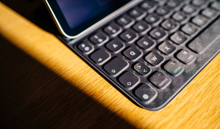 Paris, France - Nov 8, 2018: Close-up macro shot of new Smart Keyboard is a hardware keyboard and cover designed by Apple for the 1st generation iPad Pro
