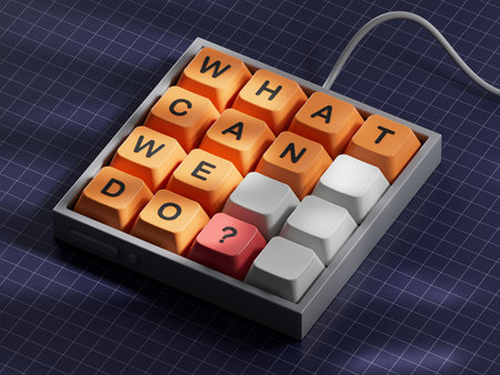 What can we do symbol. Computer keyboard keys with words What can we do.Business and What can we do concept. Computer keyboard keys. Copy space.3D rendering on blue background.