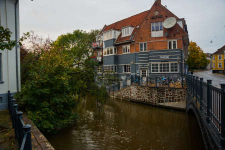 Odense, Denmark: Beautiful old buildings by the river in Odense. Denmark Europe
