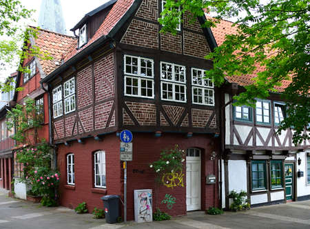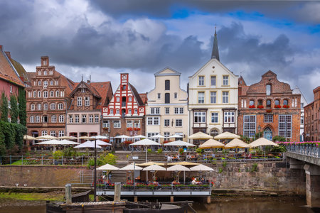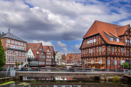 Half-timbered houses on the bank of the river in Luneburg, Germany