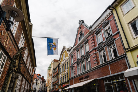 Lubeck, Germany - February 13, 2024: Lubeck city centre in region Schleswig-Holstein, Germany. Hanseatic City. Old Town architecture.