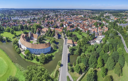 RHEINBACH, GERMANY June 26, 2020 The canals with a bridge and houses in the city of Friedrichstadt