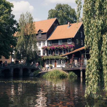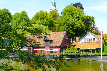 Waterside scenery at the Hanseatic City of Lübeck, a city in Northern Germany