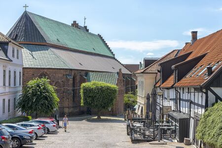HELSINGBORG, SWEDEN - JUNE 27, 2020: The medieval church of Saint Marys in the town centre of Helsingborg in Sweden.