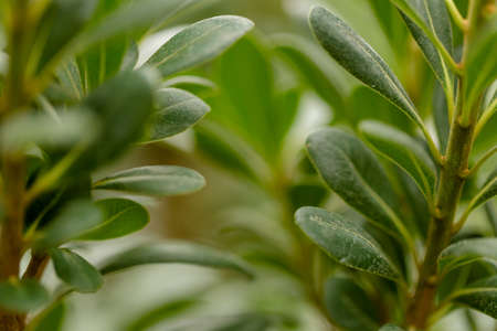 Green leaves of Pittosporum tobira - Pittosporum tobira foliage