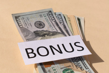 Cash Dollars money and the word BONUS. Concept of bonus