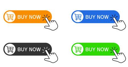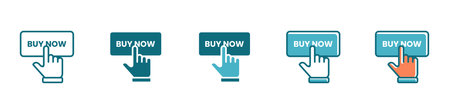 Buy now icon set with hand pointer clicking the button vector purchase or order product design