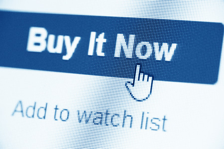 Closeup of a finger tapping the Buy It Now button on a smartphone screen during online shopping.