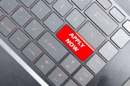 A picture of keyboard with the word APPLY NOW for recruitment or other application