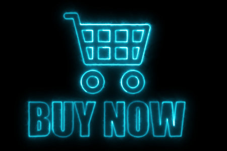 Neon sign with shopping cart icon Buy Now text concept for online shopping and sales promotion.