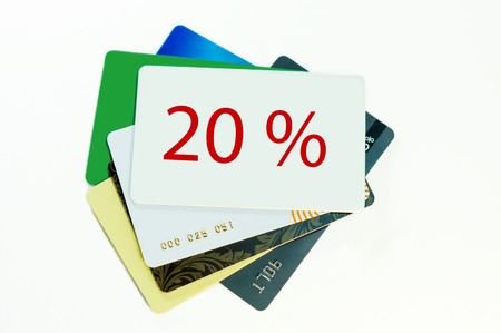 20 per cent. 20 discount, drop or increase. The number 20 percent is white on a red background as a symbol of a change in price or quantity. Photo,dimensional figures, standing, casting a shadow.