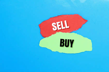 red and green paper torn with the words Sell and Buy. the concept of selling and buying