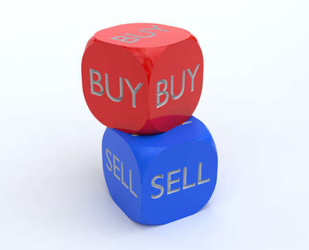 hand colored cubes with the words buy or sell