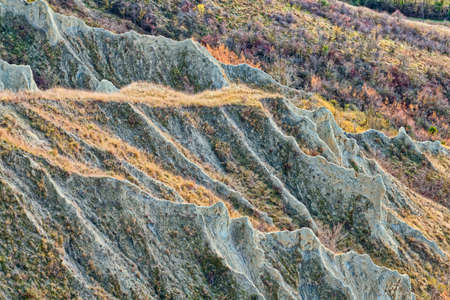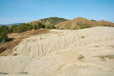 Muddy volcanoes Paclele Mari near Buzau, Romania. Mud and natural-gas eruptions create small volcanoes in natural reserve.