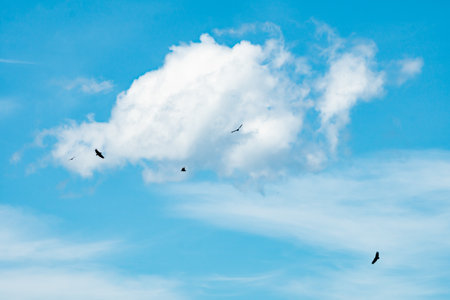sky with white cloud and birds
