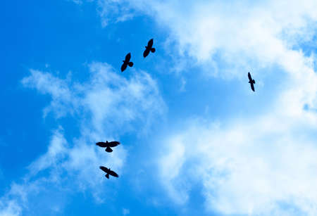Flight of crows in the sky.