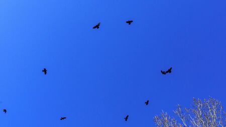 Group of Black Vultures (Corvus corax) in flight