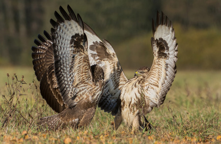 Buzzard (Buteo buteo) fighting on the ground