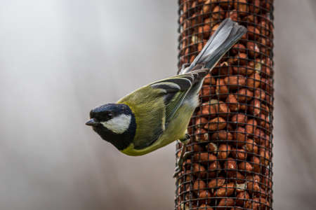 Great Tit (Parus major) in a bird feeder.