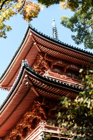 Most beautiful ancient Japanese temple or shine in Kyoto around red maple forest in Autumn season.29 November 2017.Kyoto, JAPAN.