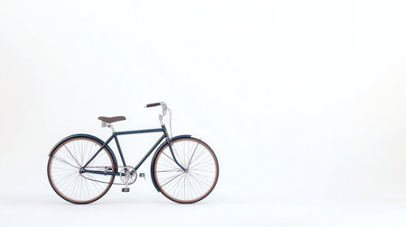 A sleek and stylish vintage bicycle with a classic dark blue frame, brown leather saddle, and thin tires, isolated on a white background. Perfect for urban commuting and cycling enthusiasts.