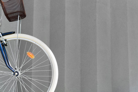 Front wheel of a hipster bike on a gray background