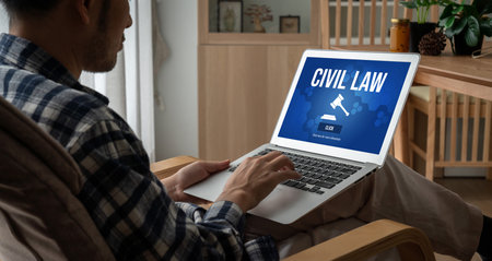 Civil law brisk information showing on computer screen for Common Justice Legal Regulation Rights Concept