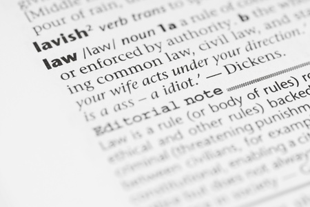 Definition of the word Law in a dictionary (with focus on the word, in blue tones)