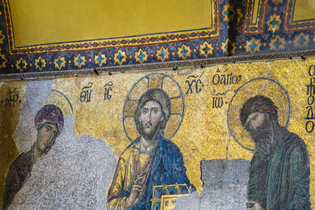 Mosaic of Jesus Christ in the old church of Hagia Sophia in Istanbul, Turkey.
