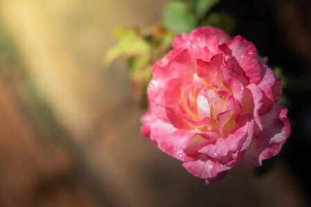 Varietal elite roses bloom. Pink and white flowers of Floribunda roses. Roses as symbol of love. Floral background