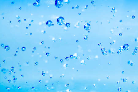 Clear water with air bubbles on blue background