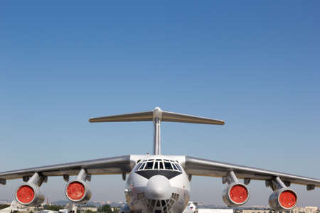 Flight of the plane IL-76MD in the stormy sky on September 09, 2014 in Sheremetjevo, Russia.