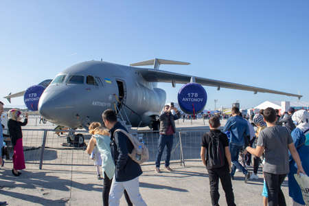 Istanbul, Turkey - September-18,2019: Antonov an-178 is being visited at the festival.