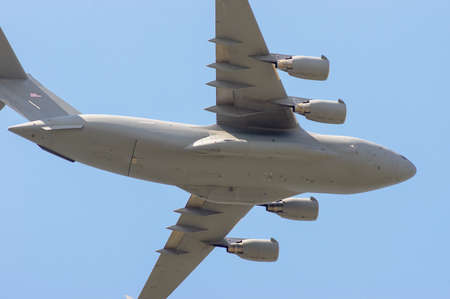 Close up view of the American C-17 Globemaster transport jet airplane engines.