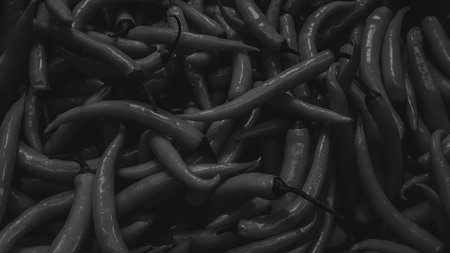 Black and white chilli peppers background. Close up of chilli peppers.
