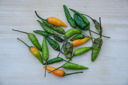 Pile of spicy green and red hot chili peppers