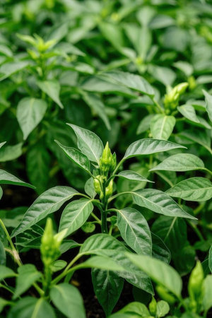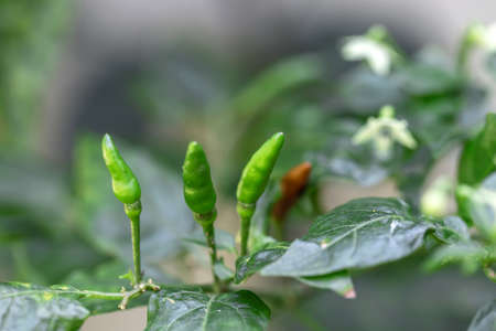 Green pepper plant in growth at vegetable garden, Thailand. (Selective focus)