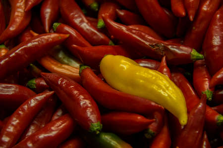 Background with bitter pepper. Colorful pods of bitter pepper. Chili pepper. Agricultural background with vegetables. Harvesting. Sale of vegetables. Agricultural business.
