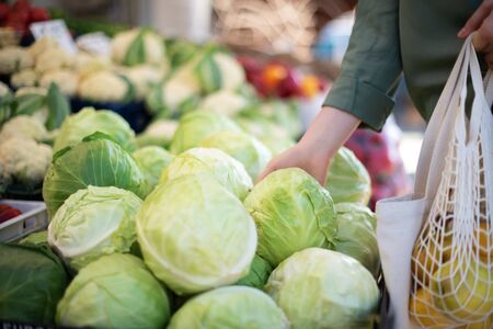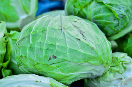 Fresh cabbage on the farmers market. Dietary and vegetarian product. Natural local products on the farm market.