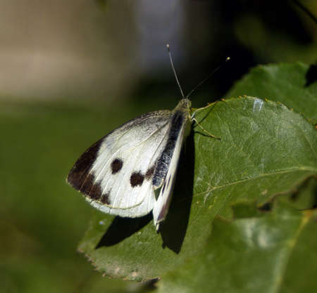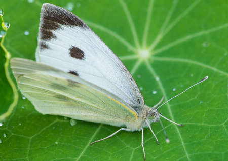 Cabbage white butterfly on a zucchini leaf-pieris brassicae