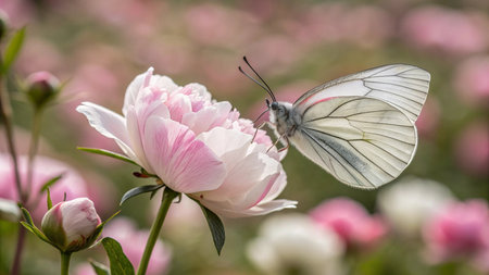 Aporia crataegi, Pieris crataegi, butterfly feeding on a pink flower